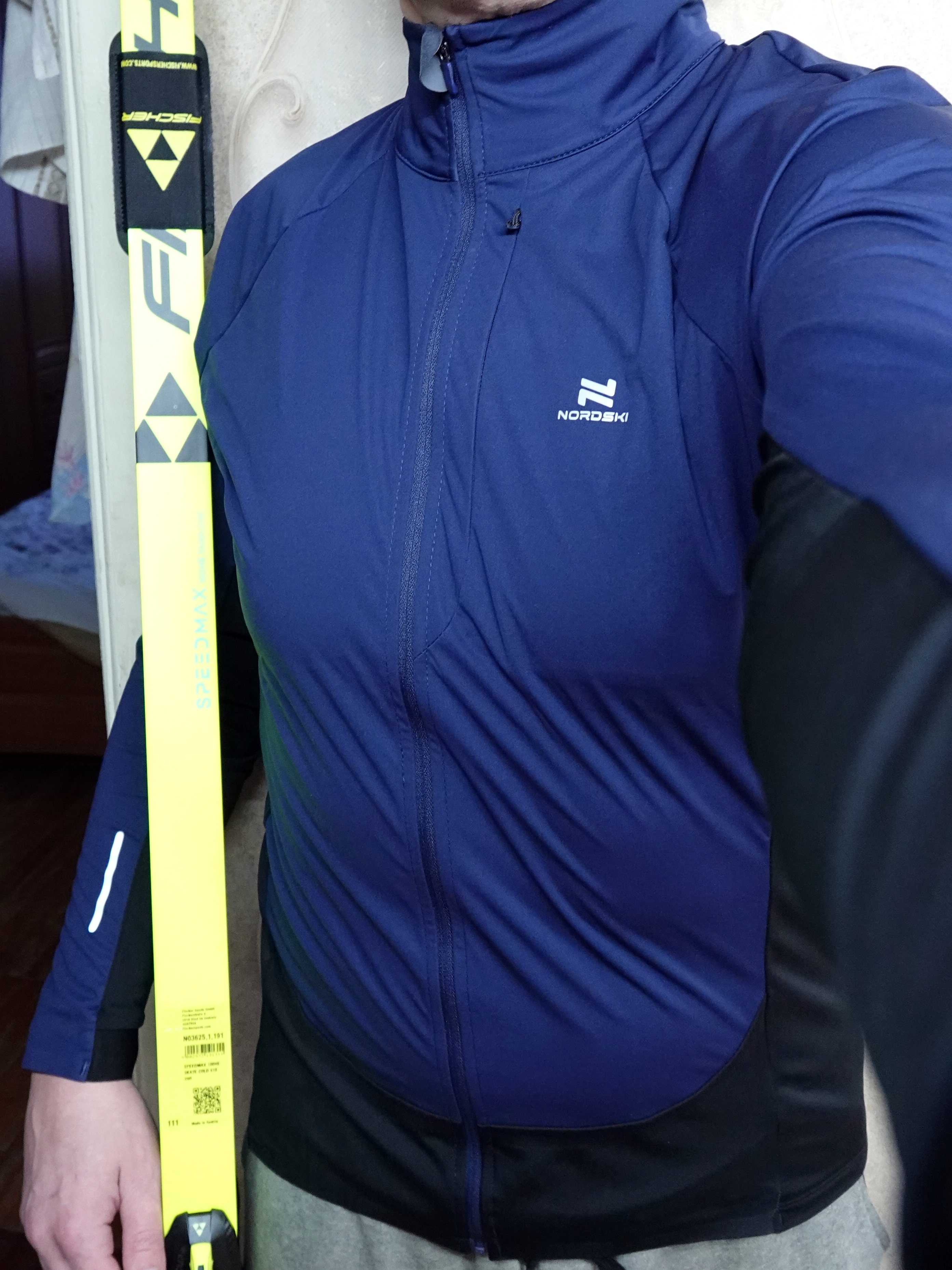 Неплохая куртка для тренировок, достаточно плотно прилегает как и должно быть у спортивной одежды. Спереди ткань ветроустойчивая, сзади - пропускает воздух для отвода излишнего тепла. Спасибо магазину Nordski за качественные вещи и желаю дальшейшего развития.
