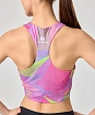 Легкий верхний материал хорошо дышит и эффективно отводит влагу. Внутренняя часть топа выполнена в виде полноценного бра на широкой резинке, что обеспечивает комфортную поддержку груди и не сковывает движения. Благодаря яркому дизайну с оптическим эффектом вы будете заметны на любом спортивном мероприятии.